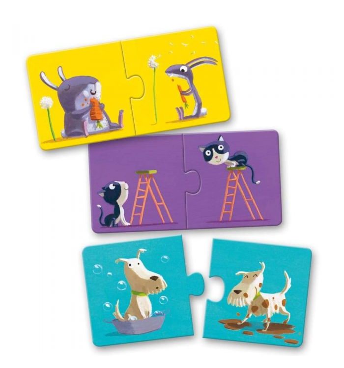 Puzzle Domino de DJECO granja, es un juego clásico para todas las edades, que combina aprendizaje con diversión.