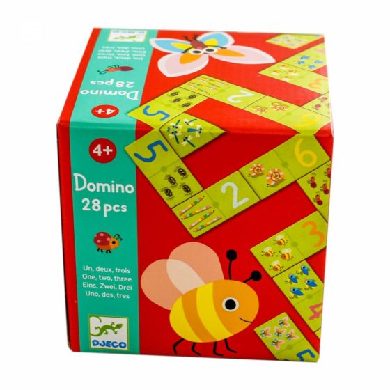 Dominó Un, dos, tres es un juego para asociar cantidades y familiarizarse con las grafías de los números, representadas con bonitas imágenes.