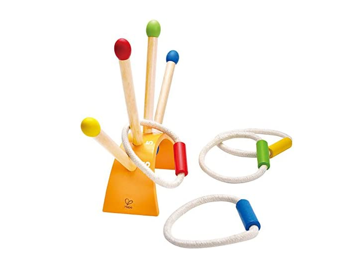 Con este juego los niños podrán desarrollar sus habilidades motoras gruesas, concentrarse y apuntar. Lanza un anillo a los postes de madera de colores y gana puntos dependiendo del poste en el que caiga. Comenzá jugando de cera y luego alejalo cada vez más para mayores desafíos.