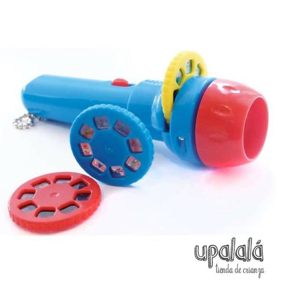 Cada linterna viene con 3 disco y cada uno tiene 8 ventanitas que proyectan escenas diferentes de una historia sin texto para que tú mism@ inventes tus propias aventuras.
