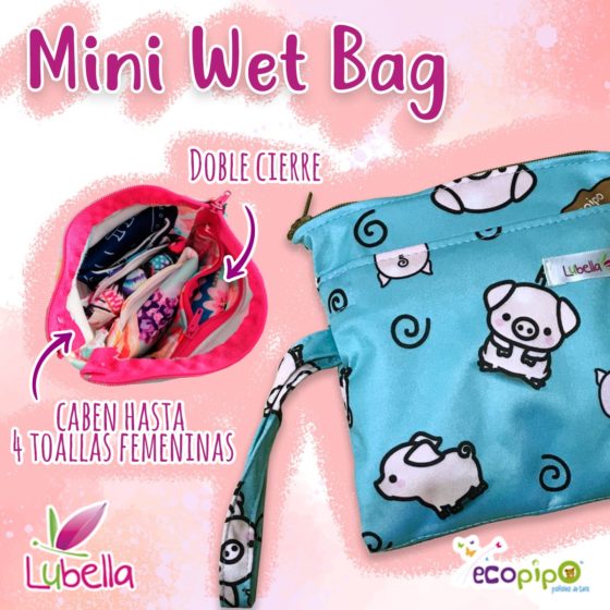Bolsa Mini Lubella para Toallas Femeninas. Esta bolsita es ideal para llevar tus toallitas limpias y almacenar las sucias ya que cuentan con un doble cierre. La tela es impermeable por lo que no saldrá ni olor ni humead.