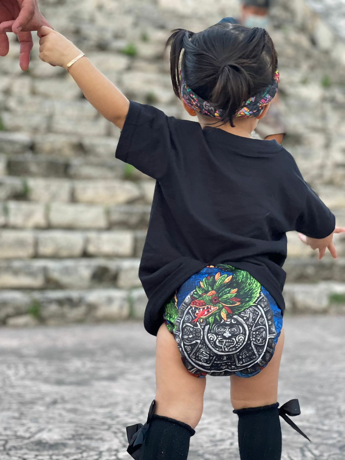 Está fabricado en su exterior por una tela llamada PUL que permite la transpiración y a su vez es impermeable. El interior del pañal está fabricado de una tela llamada “Microfleece” que mantiene seca la piel del bebé además de ser muy fácil de desmanchar. Además, cuenta con un sistema de barreras internas para evitar fugas.