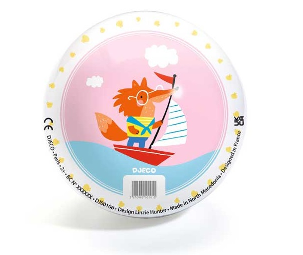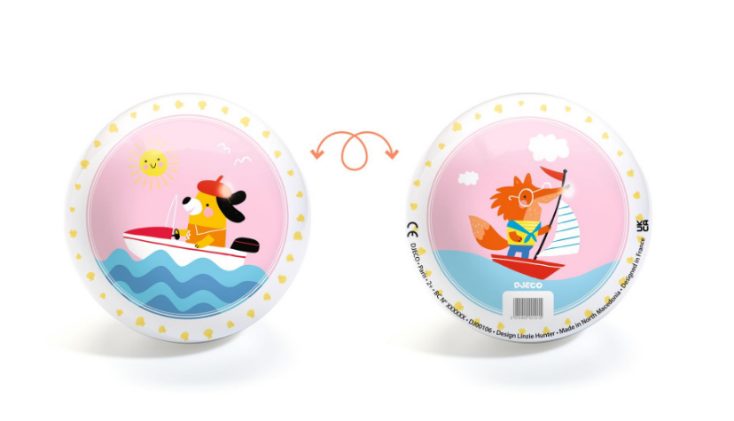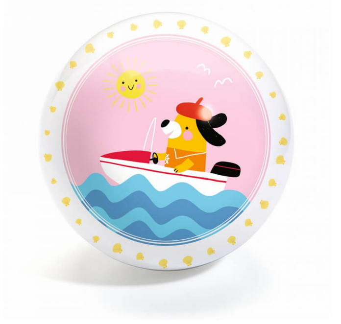 Pelota de PVC de la marca Djeco con bonitas ilustraciones de animales en bote