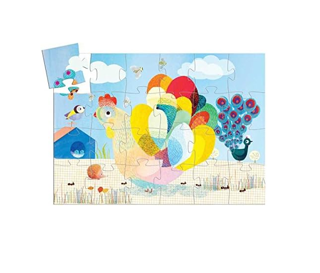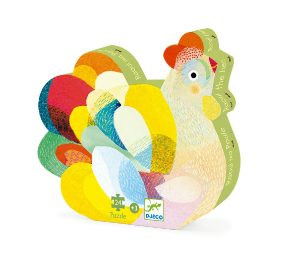 Puzle silueta La gallina Raoul de Djeco. Un brillante y colorido rompecabezas de 24 piezas con la bella Raoul la gallina.