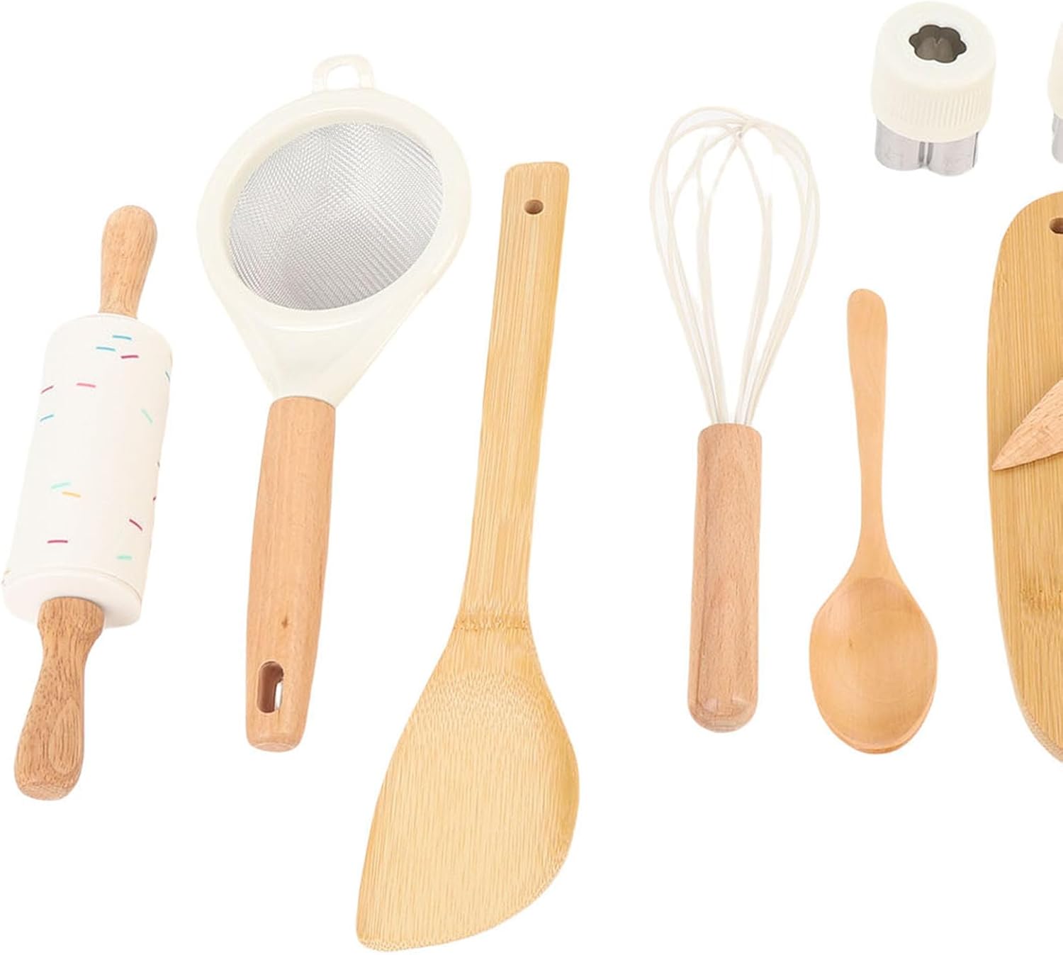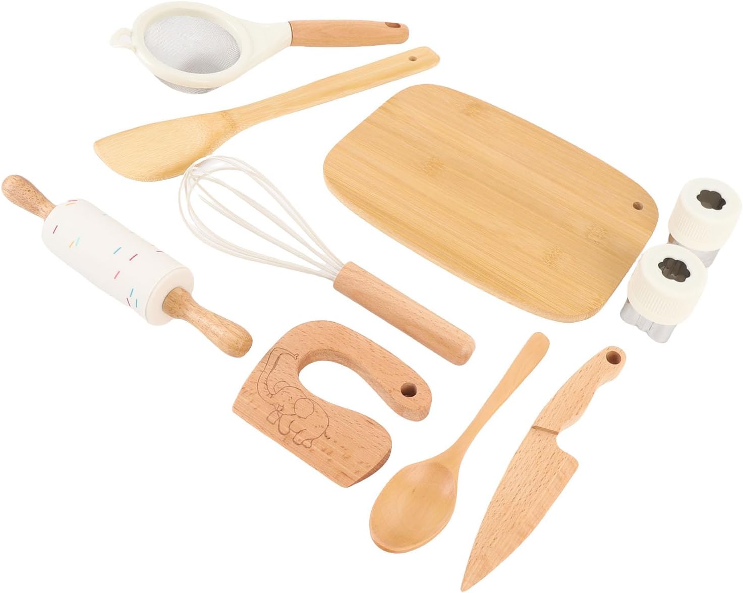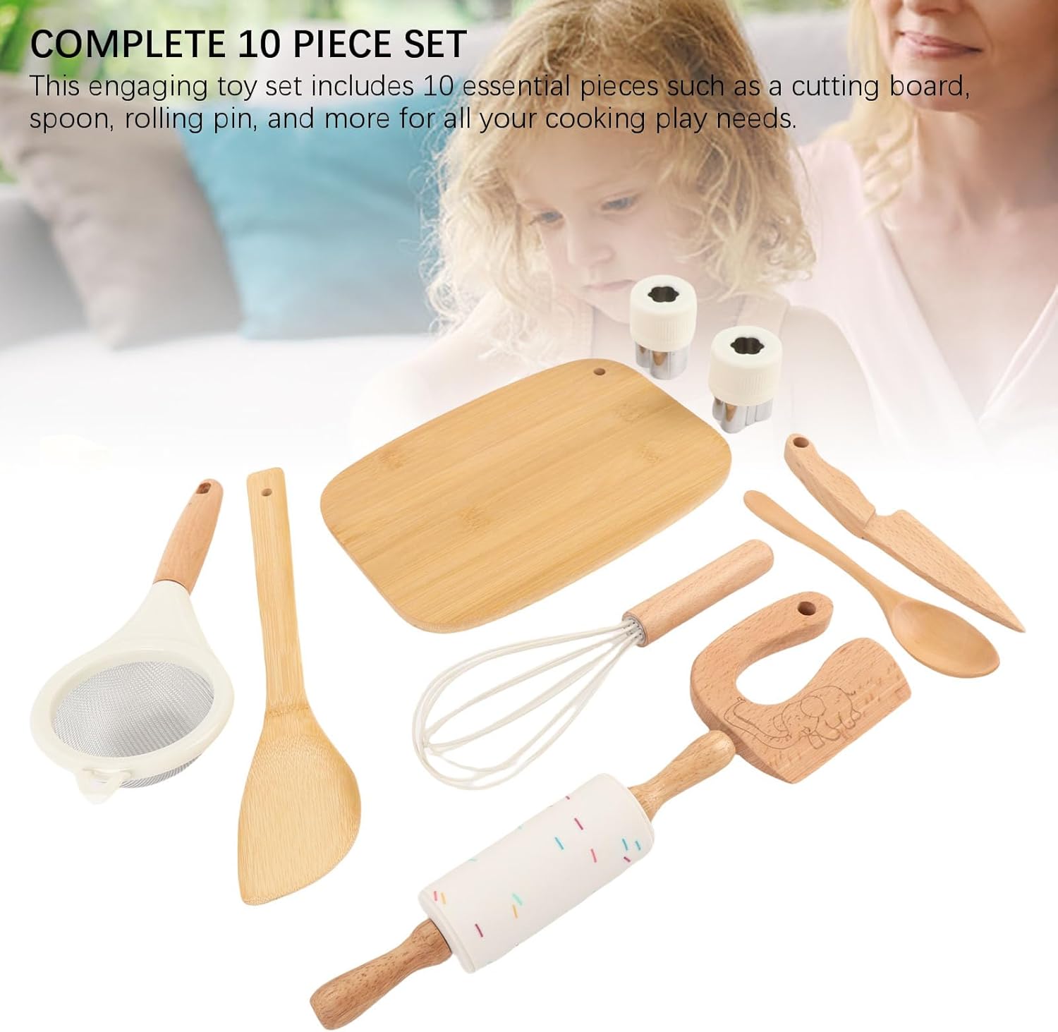 JUEGO COMPLETO DE 10 PIEZAS: Incluye accesorios esenciales como tabla de cortar, cuchara y rodillo para un tiempo de juego completo.