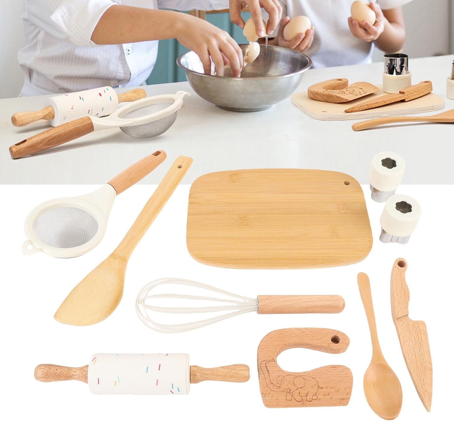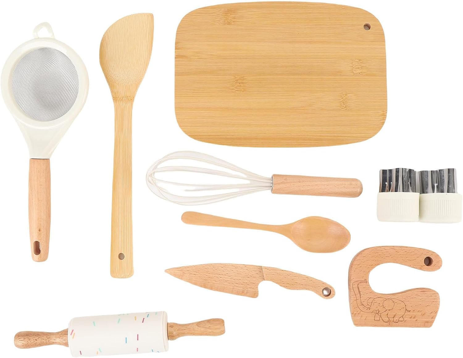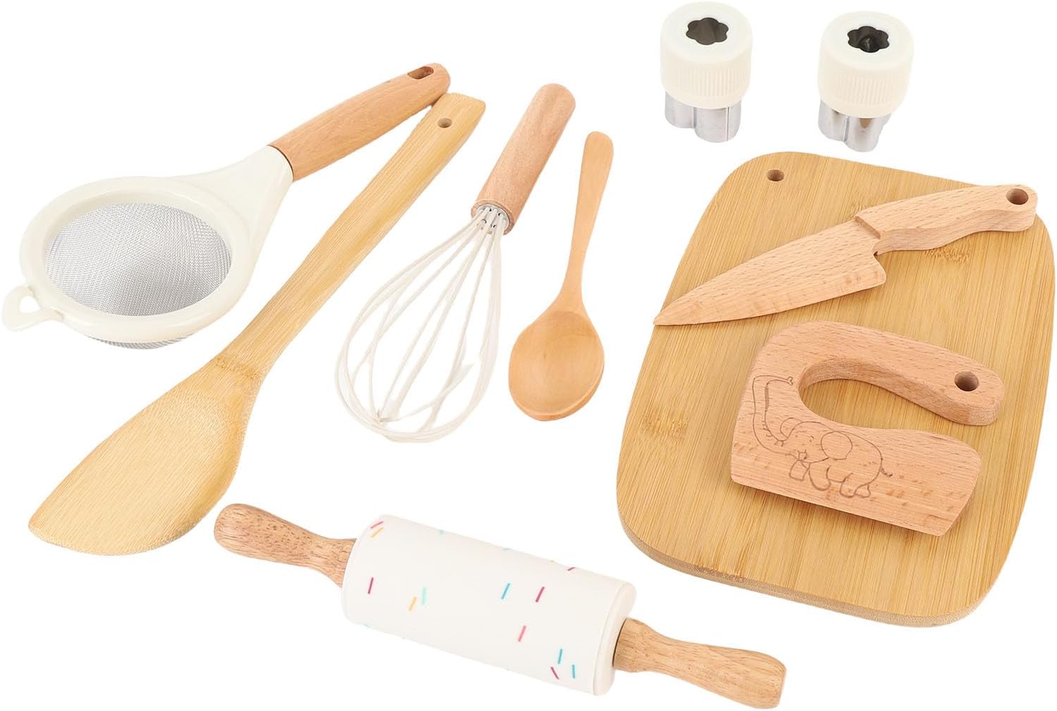 JUEGO COMPLETO DE 10 PIEZAS: Incluye accesorios esenciales como tabla de cortar, cuchara y rodillo para un tiempo de juego completo.